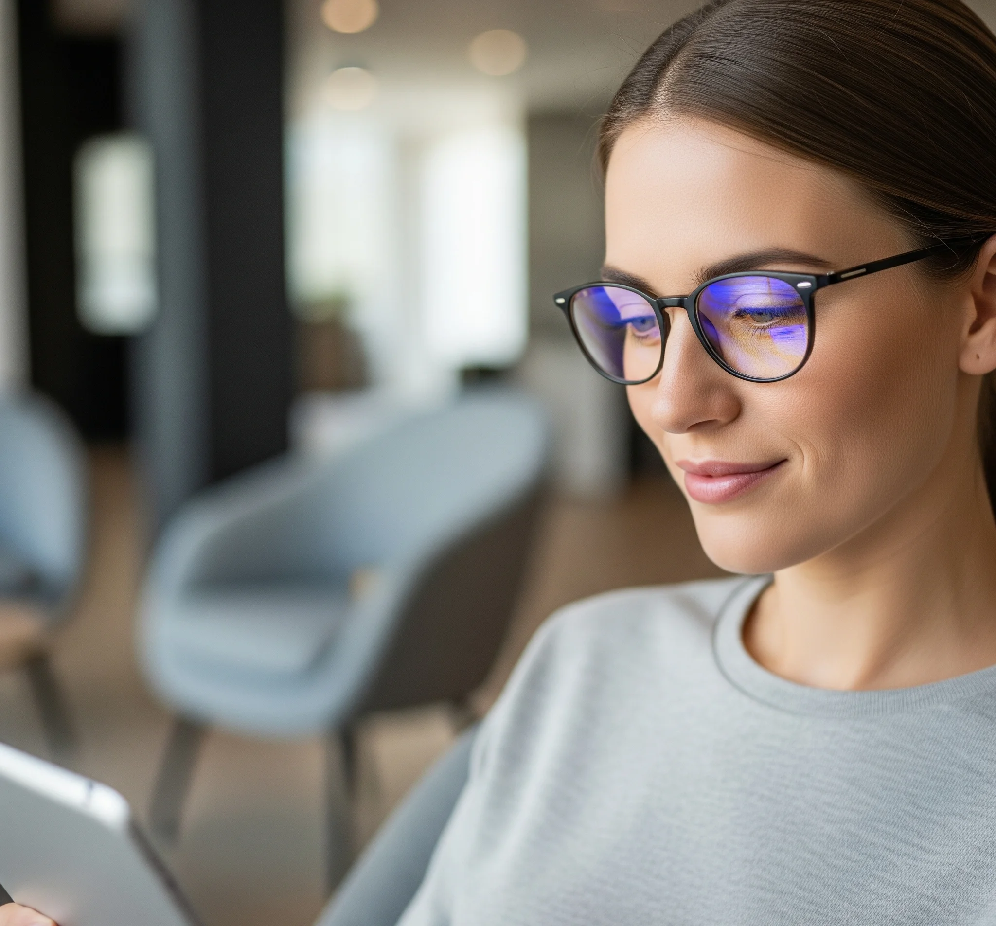 Revolutionizing blue-cut technology. We block harmful UV420 and high-energy blue light (400–450 nm) while maintaining crystal clear optics. Ideal for designers and artists who need color accuracy.